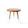 Kulatý konferenční stolek z dubového dřeva se třemi nohami doplněnými bílými "ponožkami," které dávají vyniknout krásné barvě dubového dřeva. Stolek nadčasového stylu, který nepodléhá módním trendům a vždy vkusně doplní váš domov. Kvalitní řemeslně zpracovaný český výrobek.