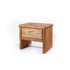 Ke krásné dubové posteli patří i krásný noční stolek s praktickou zásuvkou, který je vyrobený rovněž z dubového dřeva. Čistý design dodá stolku bezúchytkové otvírání TIP-ON značky Blum. Přírodní hrany nočního stolku vyzdvihují ruční řemeslnou práci.